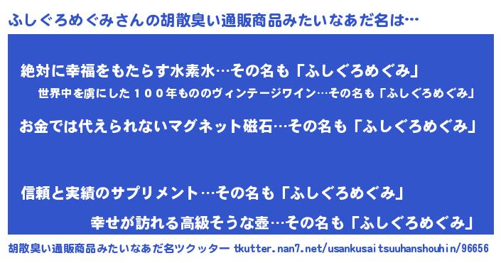 | ヘコむあだ名 | 『ふしぐろめぐみ(笑)』『豆乳』 |