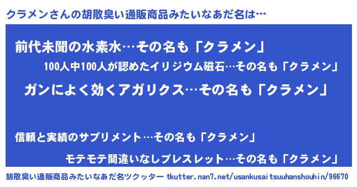 | ヒーロー風カッコイイあだ名 | 『超時空戦士クラメン』『ネオクラメン』 |