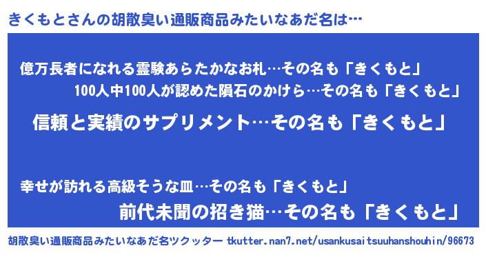 | ヒーロー風カッコイイあだ名 | 『黄金騎士キク』『スーパーキクモト』 |
