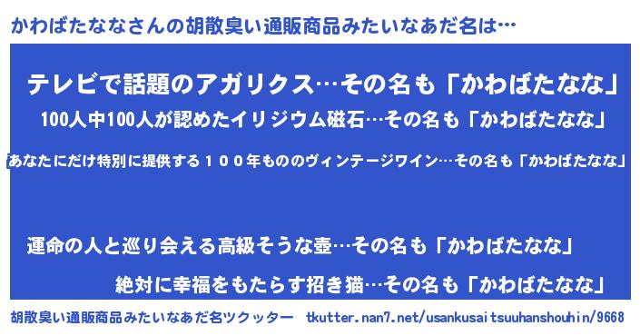 | 伝説のあだ名 | 『古文書に記された吟遊詩人かわばたなな』 |