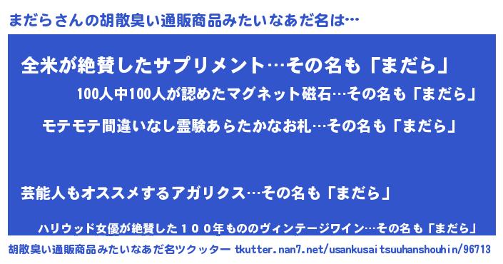 | 意味不明あだ名 | 『ペロリンまだら』『自称まだら』 |