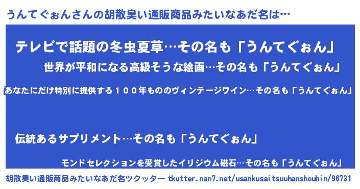 | 欧米人風あだ名 | 『ダレノガレうんてぐぉん』 |