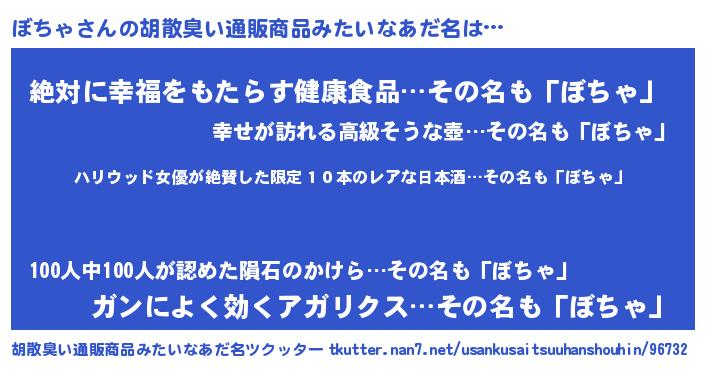 | ヒーロー風カッコイイあだ名 | 『仮面ボチダー』『ネオボチャ』 |