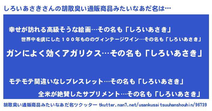| 意味不明あだ名 | 『自称しろいあさき』 |
