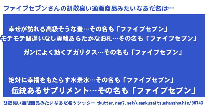 | 女子向けラノベタイトル風あだ名 | 『ファイブセブンなんてお断りですっ。』 |