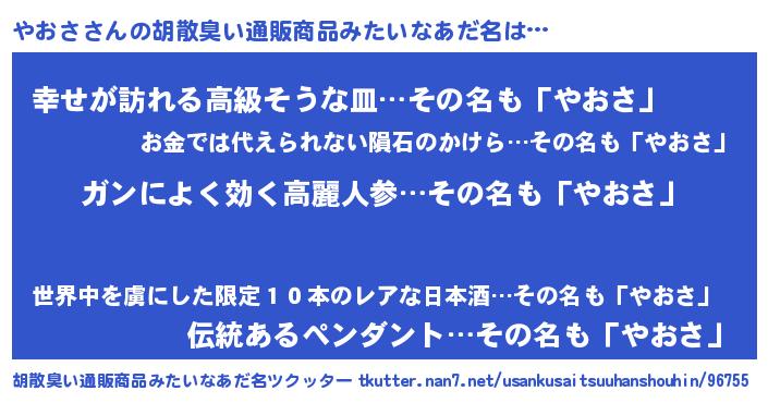 | 意味不明あだ名 | 『自称やおさ』『やおさフォーエバー』 |