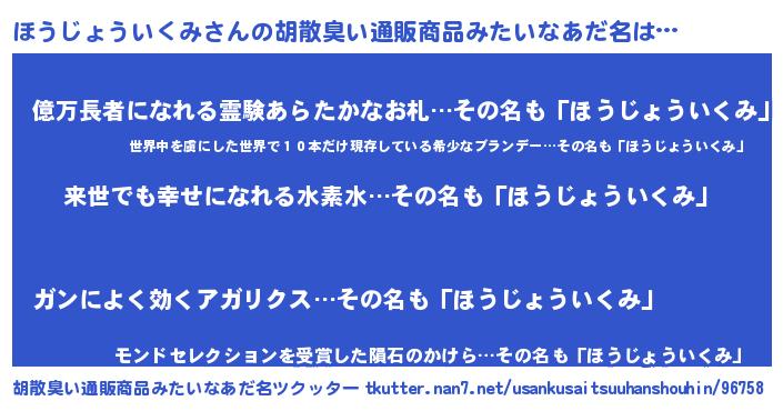 | ヘコむあだ名 | 『ほうじょういくみ(震え声)』『ほうもー』 |