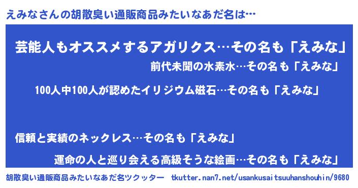 | 意味不明あだ名 | 『しいたけ科えみな属』『自称えみな』 |