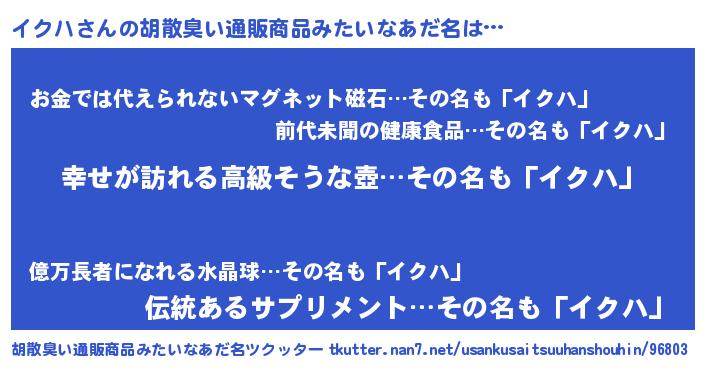 | 意味不明あだ名 | 『イクハフォーエバー』『永久保存イクハ』 |