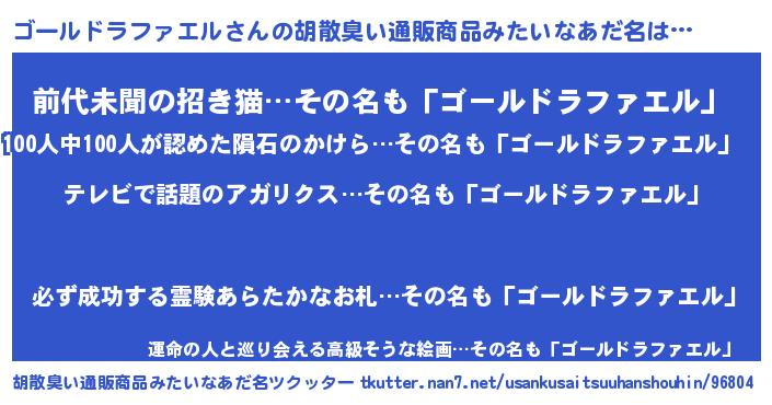 | 意味不明あだ名 | 『自称ゴールドラファエル』 |