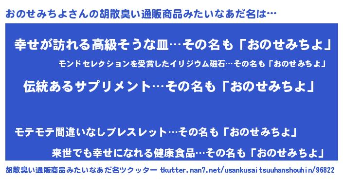 | 意味不明あだ名 | 『とにかく怪しいおのせみちよ』 |