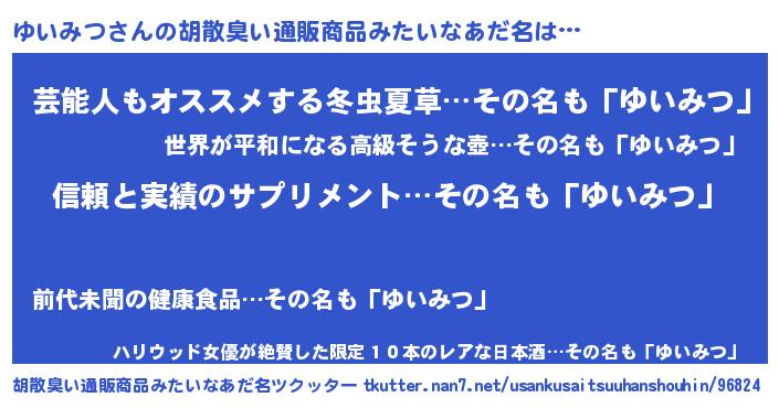 | 意味不明あだ名 | 『とにかく怪しいゆいみつ』 |