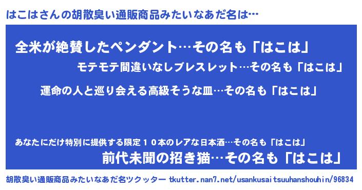 | ポケモン風あだ名 | 『ハコハダネ』『ヒハコハ』 |