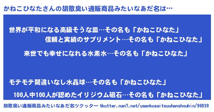 | 意味不明あだ名 | 『永久保存かねこひなた』 |