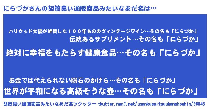 | 意味不明あだ名 | 『永久保存にらづか』 |