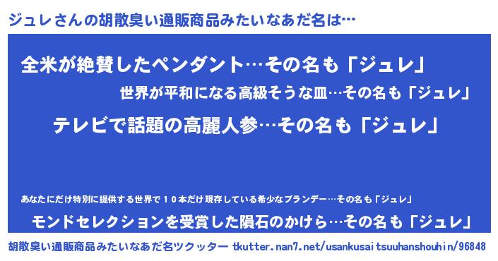 | ヒーロー風カッコイイあだ名 | 『ウルトラ戦士ジュレ』『天弓騎士ジュ』 |