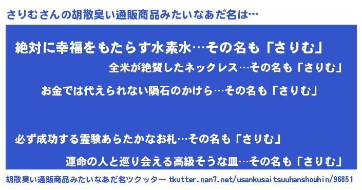 | ヘコむあだ名 | 『さりむ(震え声)』『つくし』 |