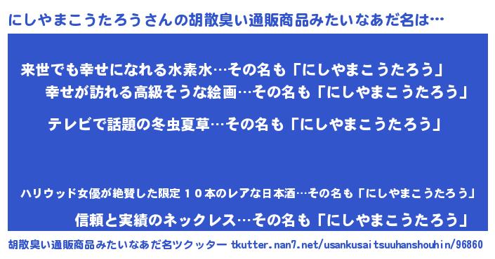 | 意味不明あだ名 | 『自称にしやまこうたろう』 |