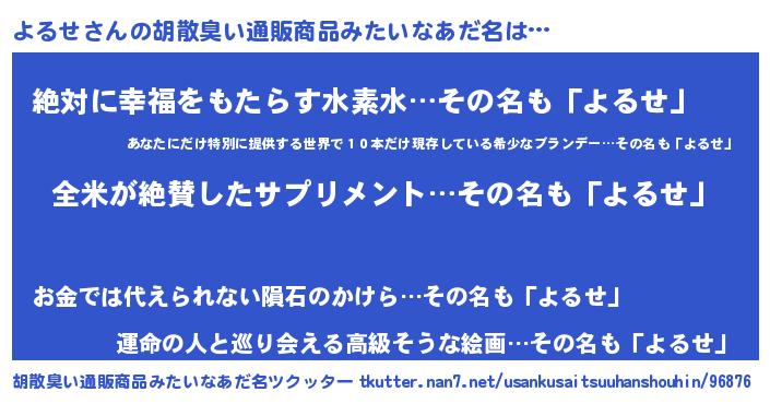 | 意味不明あだ名 | 『ニラ科よるせ属』『永久保存よるせ』 |