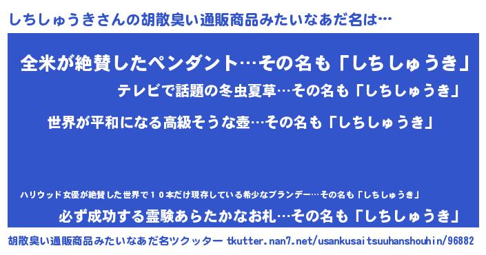 | ヒーロー風カッコイイあだ名 | 『ウルトラしちしゅうきマン』 |