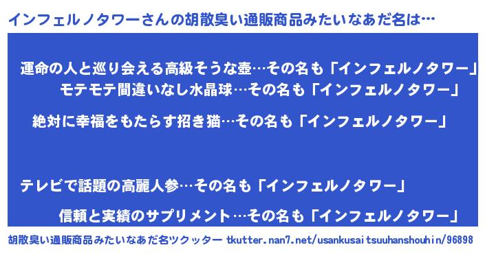 | 意味不明あだ名 | 『永久保存インフェルノタワー』 |