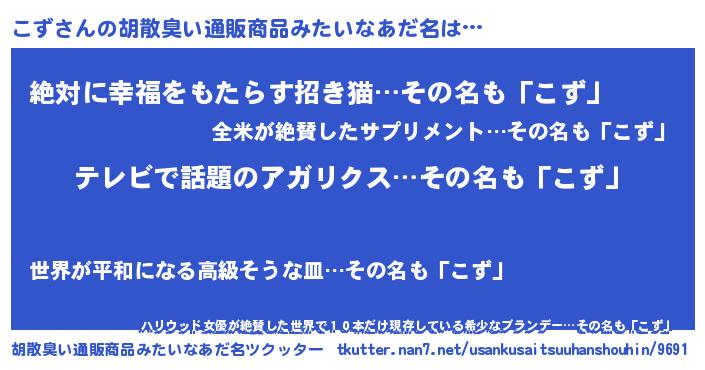 | 意味不明あだ名 | 『自称こず』『永久保存こず』 |