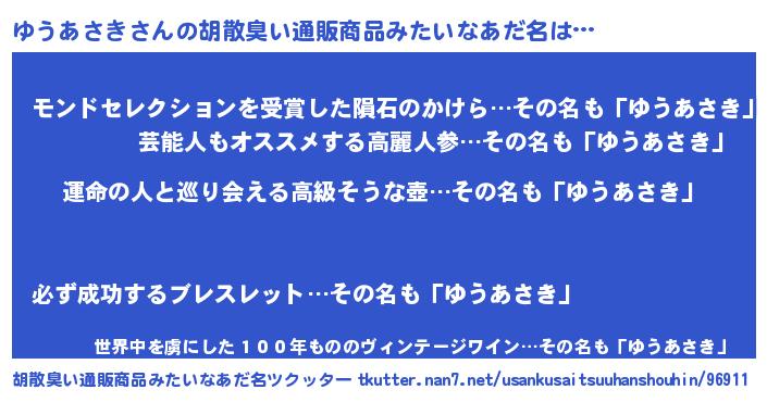 | 意味不明あだ名 | 『ヨモギ科ゆうあさき属』 |