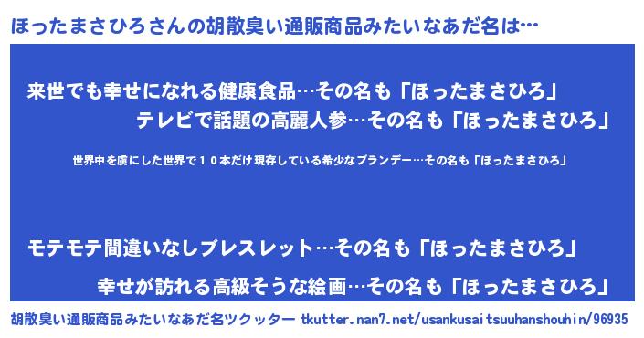 | ヘコむあだ名 | 『ほったまさひろ(遠い目)』『なまこ酢』 |