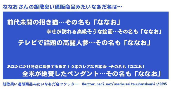 | 欧米人風あだ名 | 『ケンブリッジななお』『ウサインななお』 |