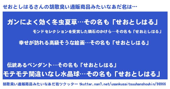 | 意味不明あだ名 | 『せおとしはるフォーエバー』 |
