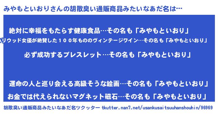 | ヘコむあだ名 | 『みやにー』『みやもといおり(爆)』 |
