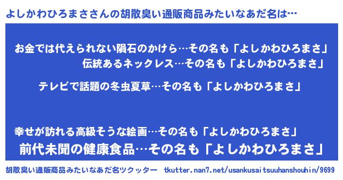 | 意味不明あだ名 | 『自称よしかわひろまさ』 |