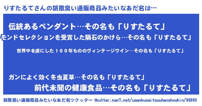 | 意味不明あだ名 | 『住所不定無職りすたるて(10歳)』 |