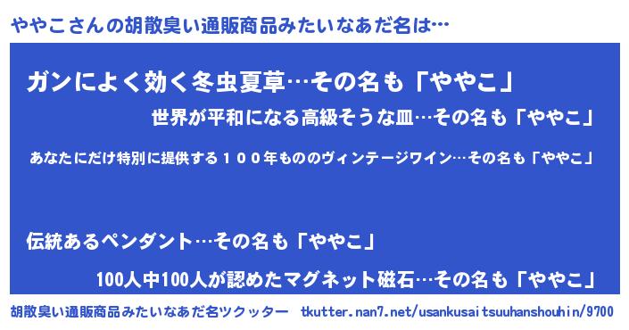 | ヒーロー風カッコイイあだ名 | 『仮面ヤヤダー』『サイバー戦士ヤヤコ』 |