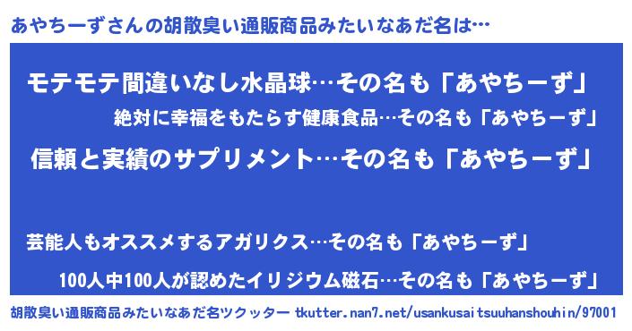 | 意味不明あだ名 | 『とにかく怪しいあやちーず』 |