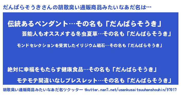 | 伝説のあだ名 | 『救世主となる占い師だんばらそうき』 |