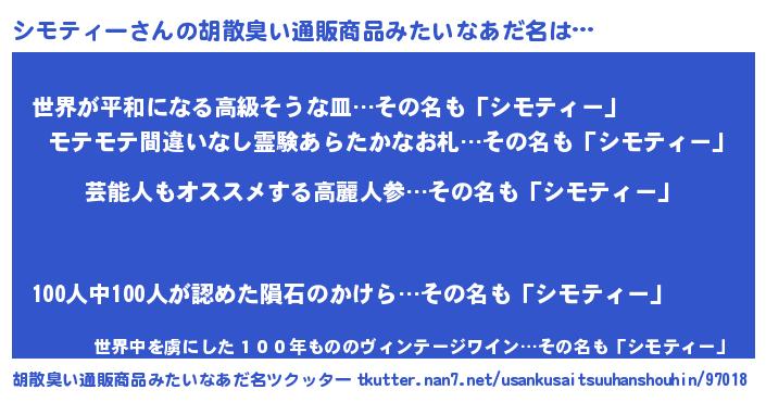 | 意味不明あだ名 | 『自称シモティー』『ペロリンシモティー』 |