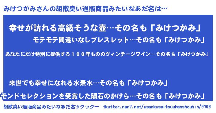 | 意味不明あだ名 | 『住所不定無職みけつかみ(12歳)』 |