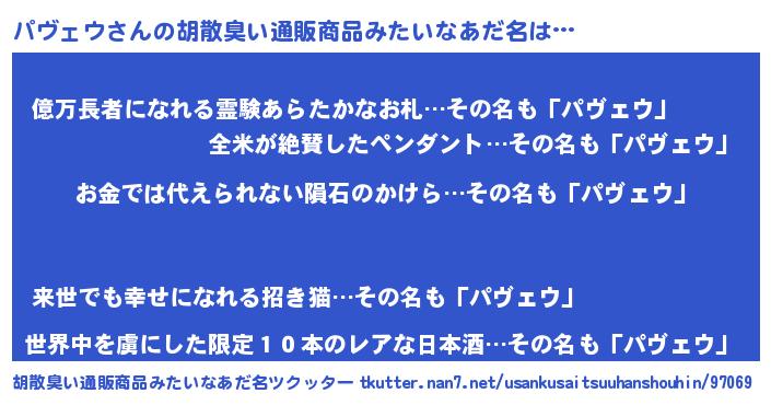 | ヘコむあだ名 | 『パヴっふぃ~』『パヴっちょ』 |