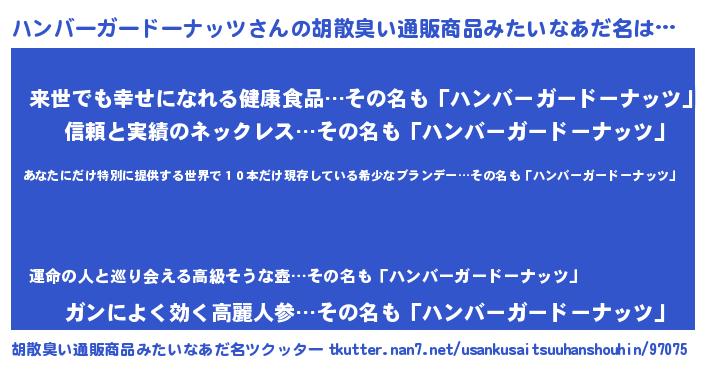 | 欧米人風あだ名 | 『ダレノガレハンバーガードーナッツ』 |