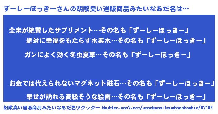 | ヘコむあだ名 | 『ずーぷりん』『牛乳』『ずーにー』 |