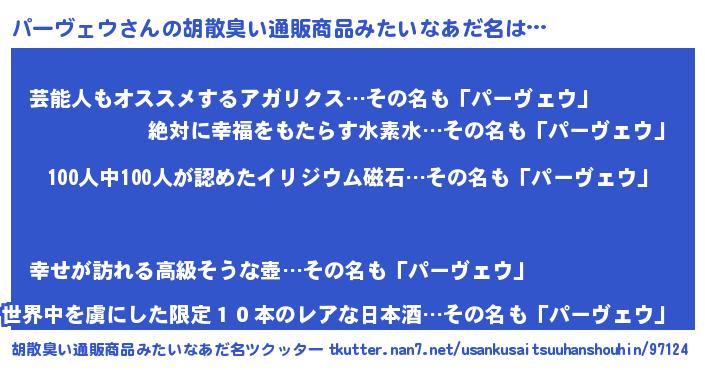 | ヘコむあだ名 | 『パーヴェウ(爆)』『レバニラ』 |