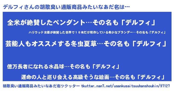 | 意味不明あだ名 | 『自称デルフィ』『ニラ科デルフィ属』 |