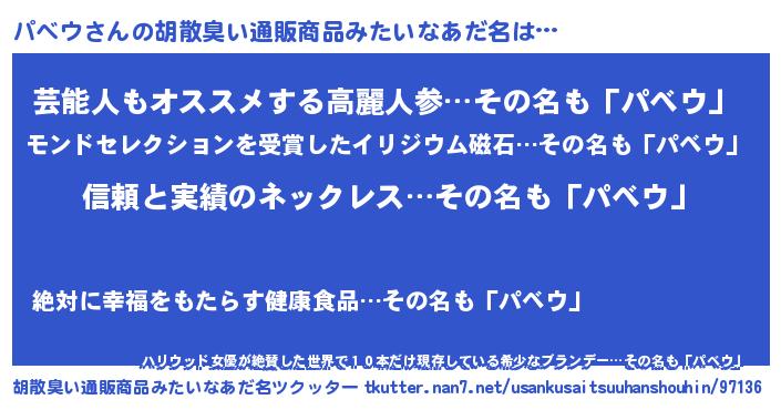 | ヘコむあだ名 | 『パベっ子』『パベウ(遠い目)』 |