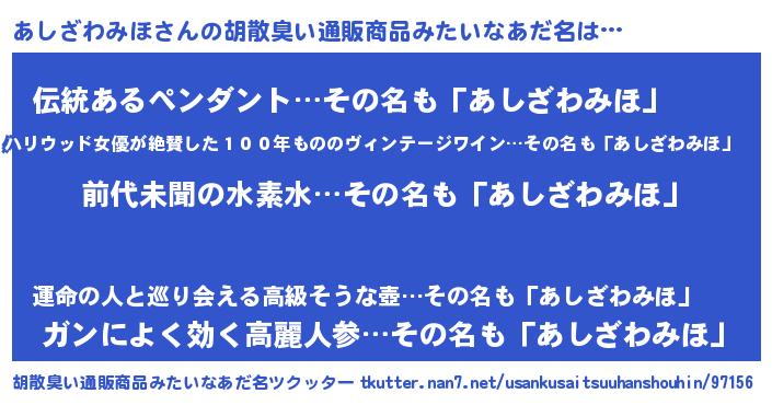 | 意味不明あだ名 | 『永久保存あしざわみほ』 |