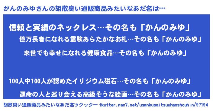 | ヘコむあだ名 | 『かんのみゆ(笑)』『かん太郎』 |