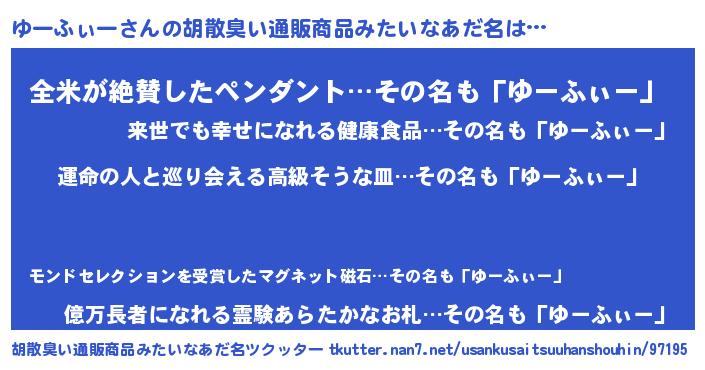 | 意味不明あだ名 | 『ゆーふぃーフォーエバー』 |