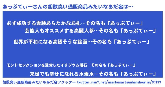 | 意味不明あだ名 | 『あっぷてぃーフォーエバー』 |