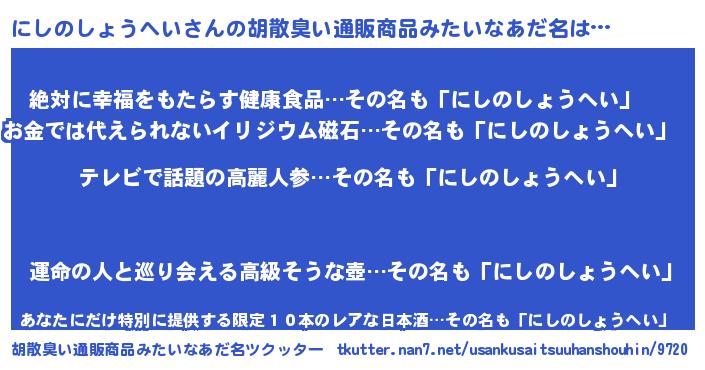 | 意味不明あだ名 | 『自称にしのしょうへい』 |