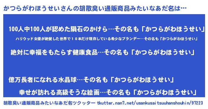 | ヘコむあだ名 | 『かつらがわほうせい(笑)』『つくし』 |